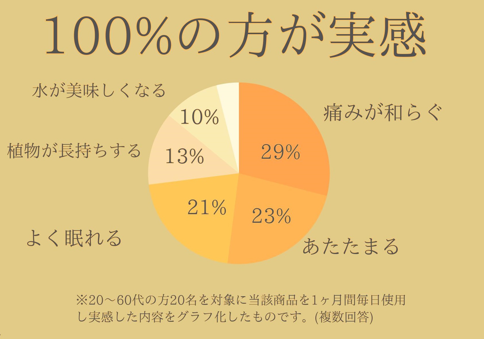 ※20代~60代の方20名を対象に当該商品を1ヶ月間毎日使用し実感した内容をグラフ化したものです。(複数回答)
